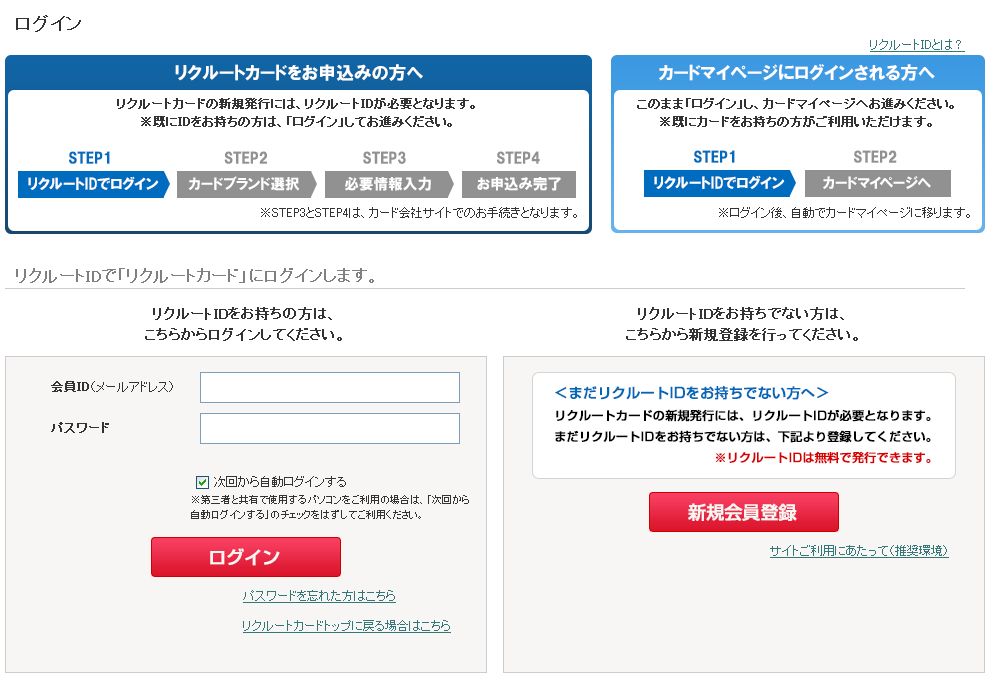 リクルートカードの申し込みページから申し込みをすることにしました。